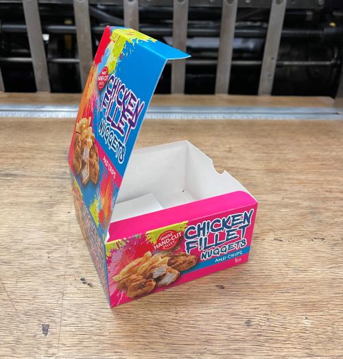 Our custom printed takeaway boxes are made using grease resistant folding box board, suitable for a wide range of food.