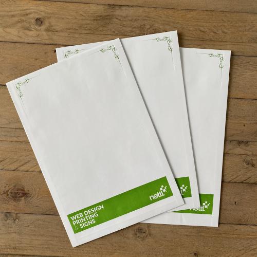 They are equipped with a handy peel and seal flap and can be printed with 2 colours to face.